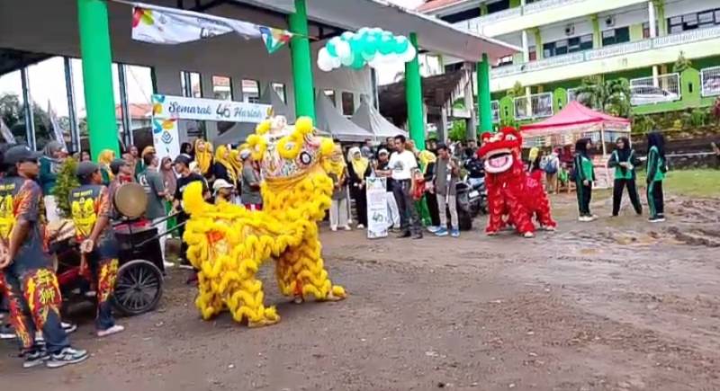 Semarak Harlah ke-46, Jalan Sehat & Temu Alumni Yayasan Walisongo Dibuka Meriah dengan Barongsai
